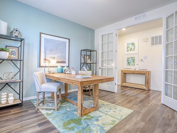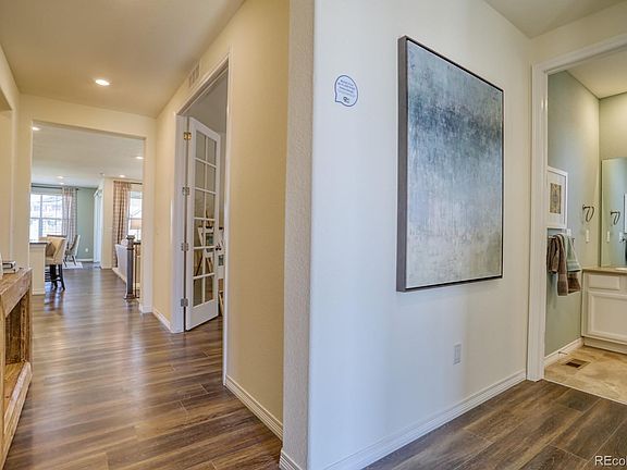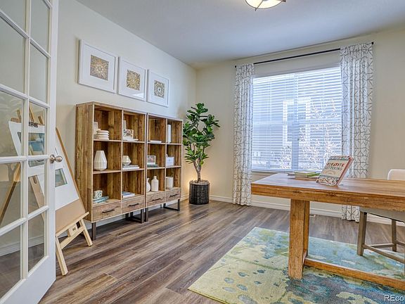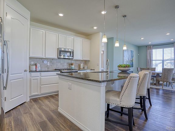 Stunning Lennar former model home is ready for July occupancy. With front range mountain views, this "Graham: ranch home offers rich detailed finished throughout! The spacious great room features luxury vinyl flooring a gas fireplace and great natural lighting. The cook's kitchen offers white painted cabinets, granite counter tops, stainless steel appliances and a walk-in pantry. The dining room offers luxury vinyl flooring and walks out to a covered deck. The spacious master suite features a large bedroom with stone accent wall, a luxury 5 piece master bathroom, and a large walk-in closet. Bedroom number two graces the front of the home and offers ample closet space. French doors lead to the main floor office/den. A main floor laundry and mudroom complete the main level. Front and back landscaping included. Window blinds included. The unfinished lower level offers great expansion opportunities. No details were overlooked!