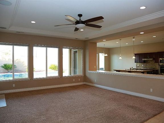 Immaculate 4 bed, 3 bath home with all the bells & whistles! Featuring a custom backyard with pool, outdoor kitchen, 3 car garage and existing RV access! You will feel right at home walking into the open floor plan where you will see the family room with tall ceilings & ample lighting, a dream kitchen with leathered granite countertops, built-in appliances, a separate dinning room & beautiful flooring throughout the home. The large master suite features, a sitting area, access to the patio & a luxury on-suite bathroom with a walk-in closet. 2 additional great sized bedrooms & a full bath share the same side of the home as the master. An isolated bedroom & bathroom can be found by the laundryroom, as well as a bonus storage/pantry room. The custom backyard has a pool, outdoor kitchen with a hibachi grill and a beautiful stone fireplace. Plus, surround sound inside and out.The garage is finished with 2 built-in closets & has a sink with storage. So much more to see! Call today!