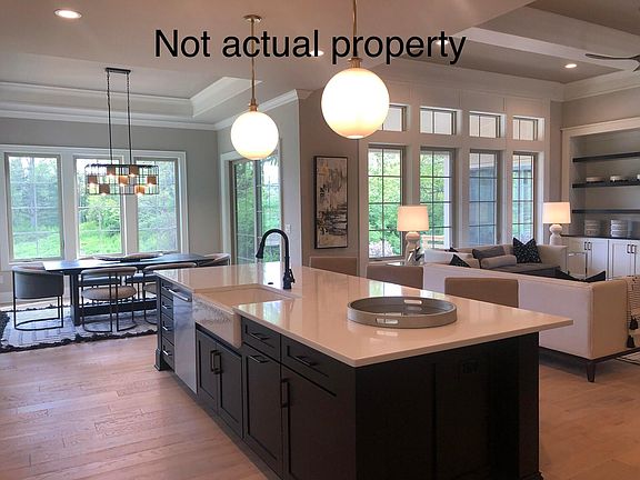 Beautiful custom ranch home featuring 12 Ft Great Room ceiling, tray ceiling in Foyer, Dining and Owner's Suite. 10 Ft ceiling & 8 Ft doors throughout the rest of the first floor. Well appointed Kitchen w/stainless steel appliances, farmhouse sink, beautiful quartz countertop, also includes a large Chef's Pantry. Spacious Owner's Suite has oversized shower with bench, storage niche and linen closet. Large owner's wardrobe conveniently connects to laundry room and also have private entry to and from the mud room/garage. Also found on the main floor, Private Guest Suite w private bath, Covered Veranda overlooking tree lined lot and large Library. . Finished lower level includes 2 Bedrooms, full bath, large Family Room, Wet Bar and storage.