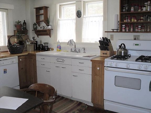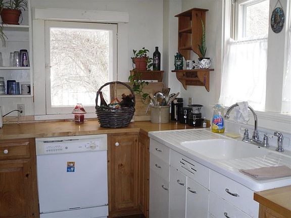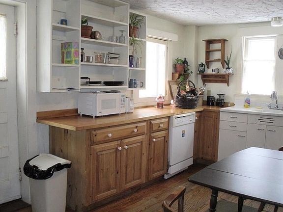 Charming Converted Barn Exposed hand hewed beams and natural woodwork. Perfect location for home occupation business, studio, gallery...bring your ideas! Large eat in kitchen, first floor bedroom and bath, 2 upstairs bedrooms along with family room. Several storage areas. Fenced yard. Convenient location.