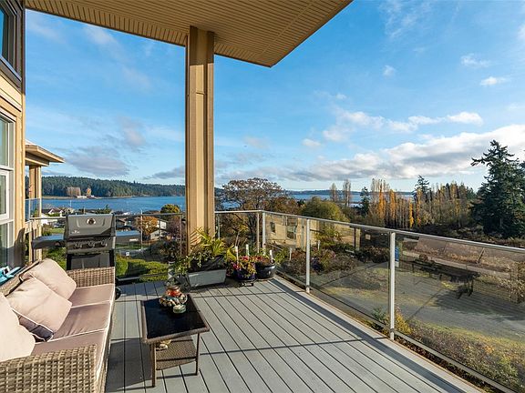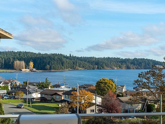 NEW LISTING! 180° OCEAN VIEWS FROM THIS BEAUTIFULLY RENOVATED PENTHOUSE Overlooking Esquimalt Lagoon & Olympic Mountains, this stunning 1,500+ sq. ft. 2 bed, 2 bath + den suite offers light, luxury + thoughtful layout. Open-concept design showcases 14' ceilings, flr-to-ceiling Low-E windows, new Valor gas fp ($10K in 2025). Gourmet kitchen features quartz counters, stainless appliances, 5-burner gas cooktop, appliance garage. Elegant finishes: white oak flrs, wool carpet in primary, recessed lighting, dual blinds, Privacy glass-door & wall den, solid wood front door. Primary suite fit for king bed, walk-in closet, spa-inspired terrazzo & quartz bath w dual sinks, soaker tub, separate glass shower. Fantastic floor plan w abundant storage: walk-in pantry, laundry rm w sink, utility rm. Geothermal heating/cooling (with A/C), secure parking, bike storage. Pet & rental friendly, well-run strata. Walk to the beach, trails, parks, nearby shops & transit. WOW