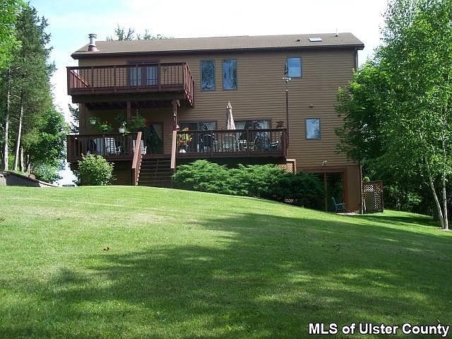 Lakefront Contemporary set far off the road and is on over 1.5 private acres. Home features open floor plan on main level with vaulted ceilings, Dutch Woodstove, huge living room with expansive lakeside deck access. One ample bedroom and large full bath completes this level. Upstairs the master suite is lakeside and measures 31 x 13 and have private bath with great garden tub and separate shower and spacious private lakeside deck. The grounds are incredible and offers much privacy and awesome views. There is also a lower walk out level that can be completed to your desires. Call TODAY to schedule your private showing