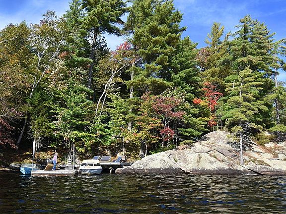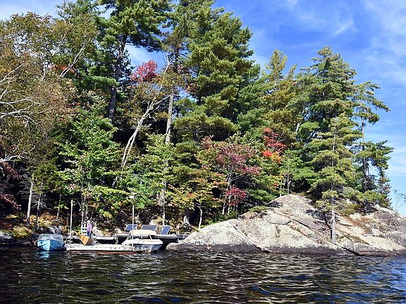 Reduced! Unique Off grid waterfront property - 3 season 1 BR cabin located on the South side of Green Point, 258 feet on a boat access area portion of desirable Raquette Lake, offering great views to the South as well as East and West. The lakeside deck & floating dock system are tucked in the cove created by the large outcropping of rock, known from way back in history as ‘Elephant Rock'. The cabin w/screened in porch, built in 2006 is nestled in the trees for privacy, up stone steps on the sloping lot from the deep-water docking area. Solar panels along the deck at the shore charge batteries that power the DC refrigerator, plus there is propane for the kitchen stove, & lights. Lake water is hand pumped to a small reservoir for the cabin's kitchen. A woodstove provides heat so owners can use the cabin up to November prior to lake freezing. Electric power possible from adjacent parcel for future use. Please qualify financially + for boat access prior to being taken to the property.