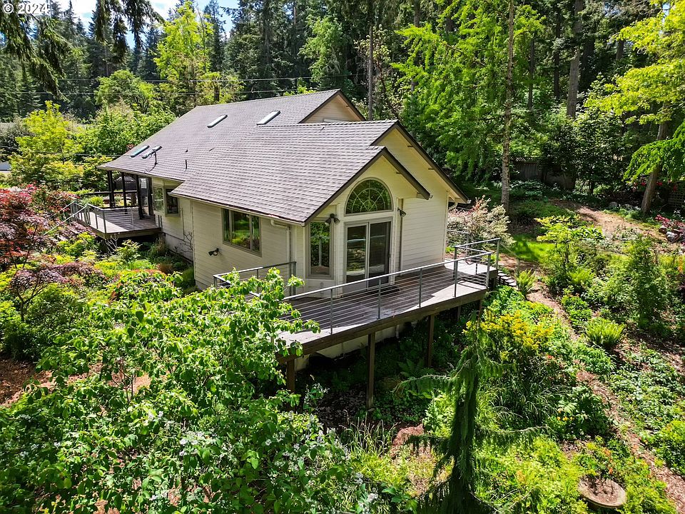 This charming 3 bed, 2 bath home in Creswell features stunning mountain views and extensive updates. The 2,275 sqft residence has a brand-new 50-year roof with eight skylights that flood the space with natural light. Enjoy outdoor living with two expansive teak wood decks, outdoor speakers, and a beautifully landscaped 1.5-acre front yard. Inside, you'll find quartz countertops, a certified wood stove, high-end windows, and a primary bedroom featuring vaulted ceilings and a sliding glass door that opens up to your own private deck! The property includes a huge outbuilding, double carport, garden shed, security system, and ample storage throughout. Additional perks include 3.5 acres of merchantable timber, a generator-ready electric panel, lawn mower, and all appliances. Don't miss out on this spectacular piece of real estate, schedule a tour today!