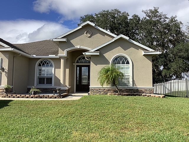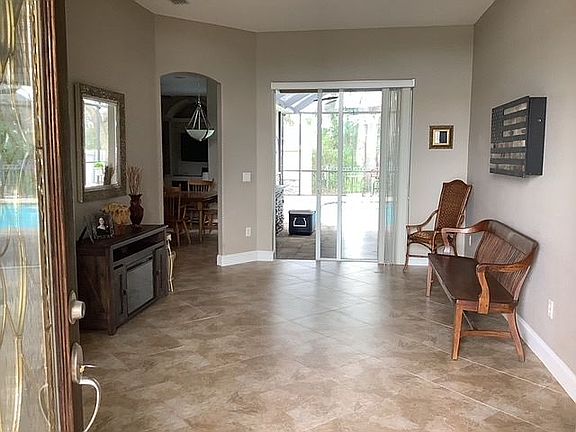 The home is a Florida style open floor plan.4 bedrooms 3 full baths, salt water pool with custom built outdoor kitchen area (LED lit top with fire feature). oversized garage with 8' doors, 10' true ceilings, tile throughout, 3 bedrooms have new carpet, master bedroom had hard wood flooring. storage shed built 2016, 5 zone irrigation system, pest tubing throughout with two outside ports, oversized lot and back yard is fenced with steel commercial panels.