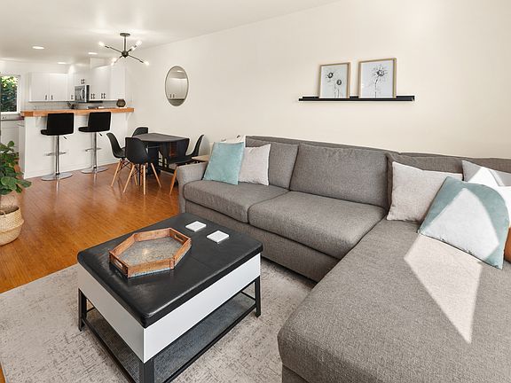 New Reduced Price! This beautifully updated 3-bedroom townhome is minutes from downtown, Queen Anne, and the Expedia/Amazon campuses. Enjoy vaulted ceilings in the upper bedrooms, including a spacious primary suite with views of the Ballard Bridge and Queen Anne Hill. The open kitchen features an eating bar and stainless-steel appliances. Bamboo flooring, tile baths, and plush carpet throughout add warmth and style. The third bedroom opens to a fenced patio and backyardperfect for BBQs and entertaining. Includes assigned parking plus ample street parking