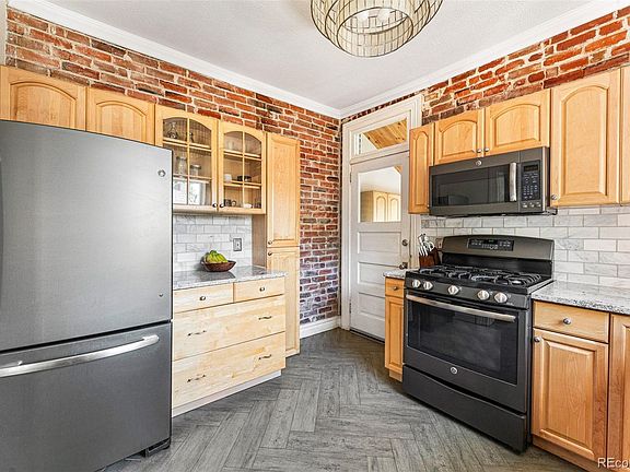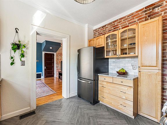 Experience the allure of Potter Highlands, as this historic Denver Square half duplex embodies timeless charm alongside tasteful modern updates. Enclosed by a wrought-iron fence, the yard leads to a warm inviting front porch, extending a hospitable greeting to all who enter. The foyer ushers guests into a sun-soaked dining room, where a cozy gas fireplace takes center stage, framed by a wooden mantel and original period tile inlay. Gleaming hardwood floors and soaring tall ceilings allow loads of natural light into the living room and dedicated dining room and flow beautifully through to the kitchen. The kitchen has been lovingly renovated to offer slab granite countertops, gas range, gorgeous marble backsplash, herringbone floors, and lovely southern exposure lighting. Additionally, a practical mudroom adjacent to the kitchen serves double duty as a pantry. Ascending the ornate staircase reveals 2 generous bedrooms including the primary that is spacious enough for your king bed and offers an incredibly large closet with perfect built-ins. Unwind in the timeless claw-foot bathtub/shower of the fully updated bathroom featuring an updated vanity and plenty of storage. The shady backyard exudes charm and privacy with its east-facing deck, lovely garden boxes, and offers plenty of room for pups to run! Parking concerns become a thing of the past, with ample space in the oversized 2-car garage for vehicles and storage of all of your Colorado toys. Notably, the full basement offers built-in storage, a complete laundry room, and potential for future expansion for additional living space and storage. The location can't be beat with all the fabulous restaurants, nightlife, cafes, and shopping that Lohi living has to offer right outside your door including Middle State Coffee, Little Man Ice Cream, Yoga Box, Uncle, the pedestrian bridge to Union Station, REI, clear creek trail and so much more! This truly special home is not to be missed!