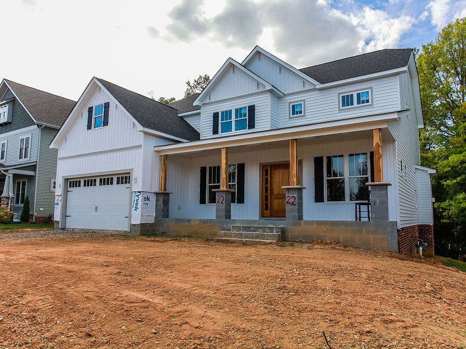 Welcome to the resort style community of Rountrey! This craftsman style home has 5 bedrooms and 3.5 baths and is stunning in every way. Full front porch with stone columns and private deck in the back. Hardwood floors grace most of the first level & gorgeous moldings throughout. Formal dining room leads to fabulous kitchen with granite counters, butler's pantry, walk-in pantry, tile backsplash, stainless steel Viking appliances with gas cooking and upgraded range hood. Great room is open to the kitchen and is so bright & spacious with stone wall, gas fireplace and upgraded lighted fan plus 2 sconces. First floor spa-like master bedroom is breathtaking. Cathedral ceiling, tall windows, lighted fan and the master bath is dreamy! Huge shower w/ 2 shower heads with tile from floor to ceiling, soaking tub, ceramic tile floor, linen closet and HUGE walk-in closet. All of the bathrooms have granite counter tops and upscale finishes. Upstairs are 4 VERY spacious bedrooms, large loft and 2 Jack 'n Jill bathrooms. With resort style amenities such as pool, clubhouse, playgrounds, walking trails, tennis, etc... you have found your next home!