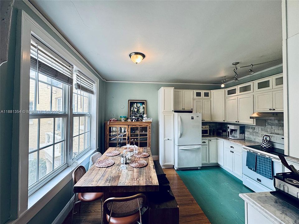 Welcome to historic Beverly Terrace Manor in Edgewater! This sun-drenched corner 1BD/1BA blends timeless charm with modern comfort. Enjoy an updated kitchen with custom cabinetry, granite counters, farmhouse sink, & room for a 6-person table perfect for entertaining. Original Dade pine floors flow throughout, complemented by 3 large closets, including a hidden one behind custom bookshelves. Unit comes with the 2 imported wooden pieces. One gated parking space included. The building features on-site laundry, landscaped courtyard, & a stunning Mediterranean Revival lobby. Prime location—2 blocks to Whole Foods, walking distance to shops and dining, with Midtown & Design District nearby. No pets. Quick approval! Available Oct. 4th.