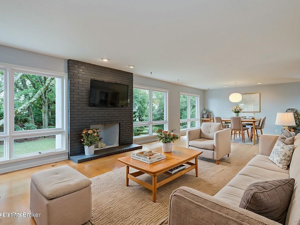 This stunning home in Seneca Park is nestled on a quiet, sought-after cul-de-sac, just moments away from the vibrant shops and restaurants of St. Matthews and Crescent Hill. With 3,089 square feet of living space, including a finished walk-out lower level, it offers ample room for comfortable living. Featuring 4-5 bedrooms and 3 full baths, the upper level boasts an eat-in kitchen with space for both informal and formal dining areas. The inviting living room is filled with natural light from four picture windows and features a fireplace. Step out onto the deck from the kitchen, perfect for outdoor grill. 3 bedrooms, 2 bath located first floor. Lower level has 2 bed, & full bath The bedrooms are spacious, each with large double closets, while the primary suite includes an ensuite bathroom. An additional full bathroom is conveniently located in the hallway. The lower level is perfect for entertaining or relaxation, featuring a family room with a fireplace and two versatile rooms that can serve as offices or guest rooms, complete with new carpet. There's also a full bath and a laundry room for added convenience.