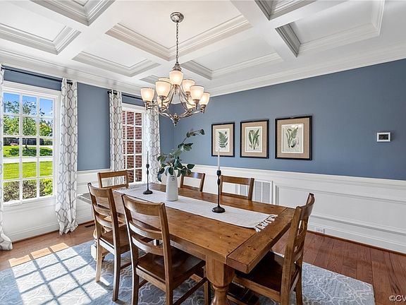 - Description: HW, coffered ceiling, crown molding, wainscoting