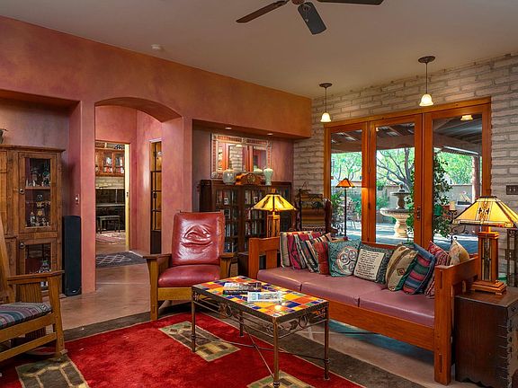 What a GEM!This amazing 2003 MUD ADOBE home exudes QUALITY, CHARM & TRANQUILITY! Avia Ricca is a cozy adobe enclave located in the HEART of the city near Campbell & Ft. Lowell. EXCEPTIONAL COURTYARD designed by award winning Jeffrey Trent (Tohono Chul's 9 desert living courtyards) PRIVATELY gated, covered patio, fountain, fireplace, banco seating, flagstone & lovely vegetation! Authentic adobe features a GREAT ROOM w/glass doors opening to patio, split bedroom plan, fp, niches, solid wood doors/cabinets, polished CONCRETE FLOORS, custom paint, solar tubes, skylights, wood shutters & blinds. SPACIOUS master br/ba feature Fr. doors to interior courtyard, walk-in closet, double sinks, large shower w/multiple shower heads & Mexican tile accents. 2nd bedroom has wall bed. This is a GREEN HOUSE.
