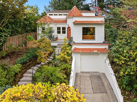 Beautiful one-of-a-kind Mediterranean perched on tree lined, close-in Irvington Neighborhood street. Just blocks to Whole Foods Grocers, Starbucks coffee, cafes, and City parks. Features include classic front porch, fresh paint inside and out, newly refinished hardwood flooring, generous room sizes and updated kitchen. The main floor includes formal dining room and formal living room with cozy gas fireplace, generous main level bedroom, full bathroom and additional office/flex space, great kitchen with eating nook and tons of storage. Many windows throughout provide an abundance of natural light. The upper level features two large bedrooms and full bathroom. The finished lower level with full bathroom makes an ideal guest room or media room and provides access to the convenient attached garage. Beautiful, landscaped back yard with patio with sweet pavilion providing a sheltered seating area to enjoy the outdoor spaces. Private driveway for off street parking. *New air conditioning installed in 2024 [Home Energy Score = 3. HES Report at https://rpt.greenbuildingregistry.com/hes/OR10233561]