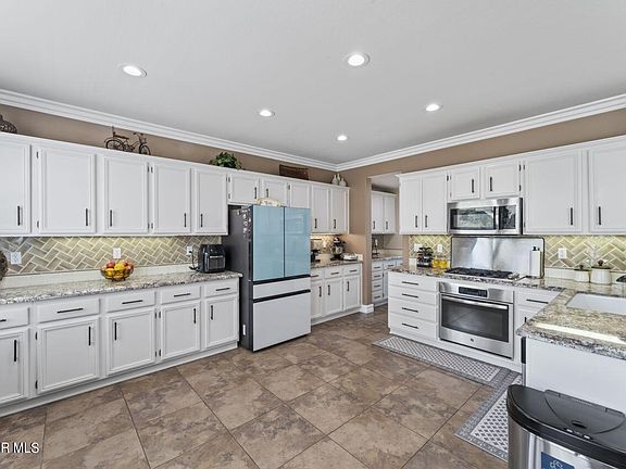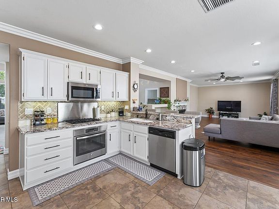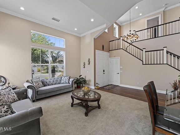 Welcome to this beautiful Madison County home, located amidst the picturesque hills of Simi Valley, where tranquility meets luxury. Spanning an impressive 2644 square feet turn key, move-in ready home with lovely updates throughout. Downstairs you will find the formal living and dining room offering 20' vaulted ceilings with crown molding and lots of natural light. The heart of the home is the light-filled remodeled kitchen, seamlessly connected to the expansive family room complete with a cozy fireplace, perfect for gatherings and relaxation. family room offers a gas fireplace, workspace area and a sliding door to rear yard. There is a half bath and indoor laundry room with direct access to the 2 car garage to finish the downstairs. The rear patio is covered by a pergola which provides the perfect amount of shade while allowing natural light into the home. It is great for entertaining with beautifully flowering drought tolerant landscape. Upstairs is an oversized master suite with a large, open layout featuring a two door walk-in closet. In the connecting master bath is marble flooring, granite counters, a jacuzzi style tub with separate shower and dual vanity sinks. In addition to the master suite, there are 3 large bedrooms and a secondary full bath with granite counters, dual vanity sink and a shower/tub combo with glass doors.