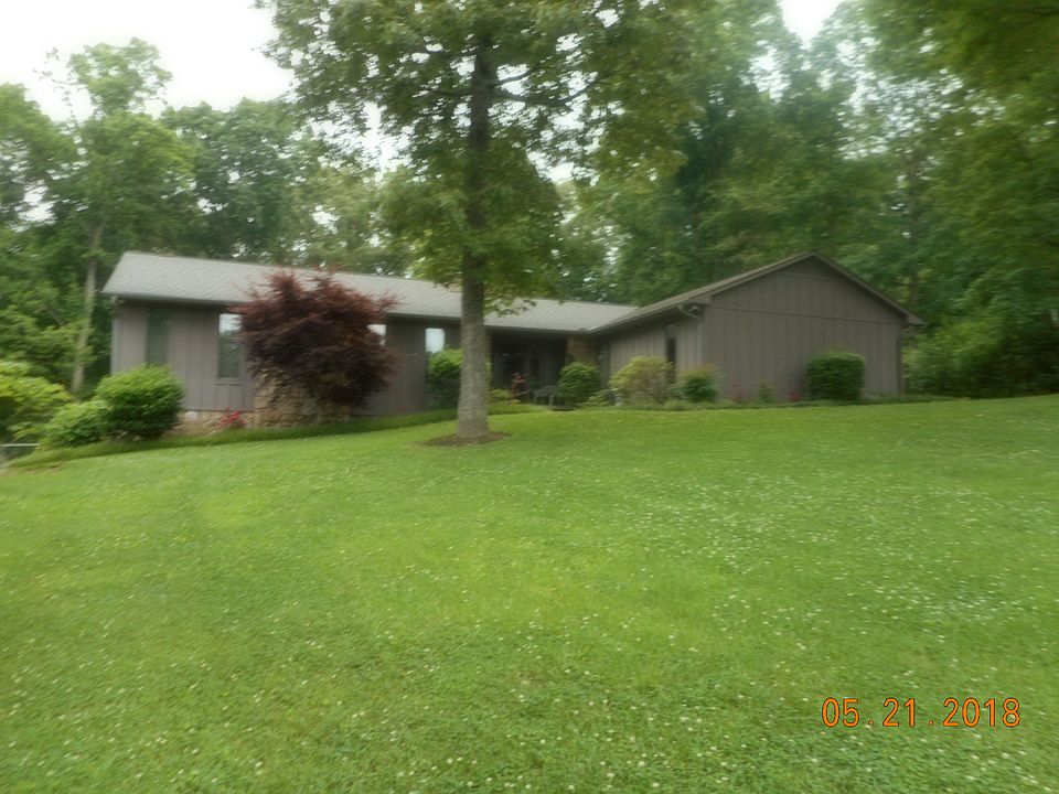 Stone and cedar siding, 3br, 2 bath, sunken great room, dining room, kitchen with dinette area, laundry area, 2 car garage on main level,basement has finished area around 300sq feet, for playroom, man cave. Also garage door and walk in door with additional concrete drive and fenced back yard. Lot is level to rolling and has 18 x 36 in ground pool, new liner and steps fall of 2015 and new privacy fence with pool house. Additional out building for lawn mower and tools, with nice overhang.