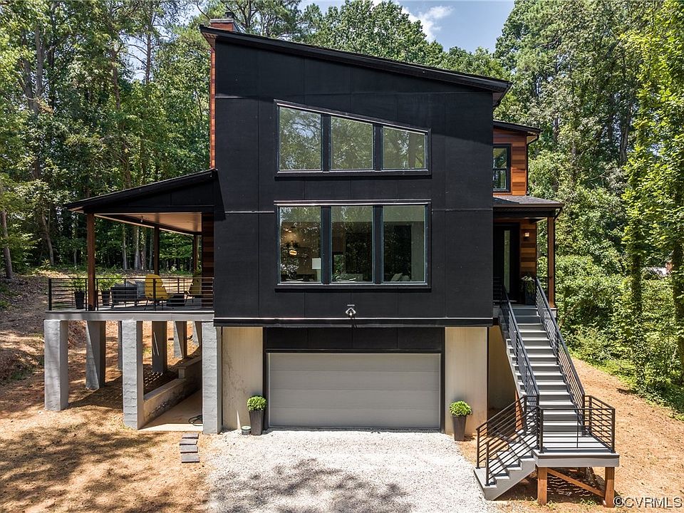 This is the home you never thought you'd find in Richmond! Thoughtful custom design, modern new build in desirable Oxford neighborhood. Light and bright, soaring vaulted ceiling, floor-to-ceiling windows allows you to enjoy the beauty of the scenery at all angles. Striking gas fireplace in spacious living room accommodates both intimate and large gatherings. Large kitchen island with waterfall edge. High end appliances, toe kick lights, custom shelving, Samsung Bespoke fridge, Kitchen Aid oven/microwave combo, walk in pantry, large laundry room, drop zone. First floor bedroom, full bath w/walk-in tiled shower. Second floor, a bonus lounge/office space. Adjacent, your bedroom oasis, w/large windows, WIC, and luxurious en suite bathroom 'wet room', soaking tub, rain shower, custom tile, marble counter double vanity, and separate WC. Also on 2nd floor, carpeted bedroom, large closet w/built-in desk also full bath with deep tub. Lowest level you'll find a bonus room/workout room, large storage closet and access to oversized 2 car garage w/EV hook up. Generous covered deck off of dining has projector hook up, gas fp, ceiling fan. Dual zone AC.