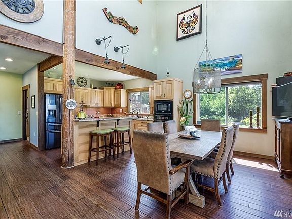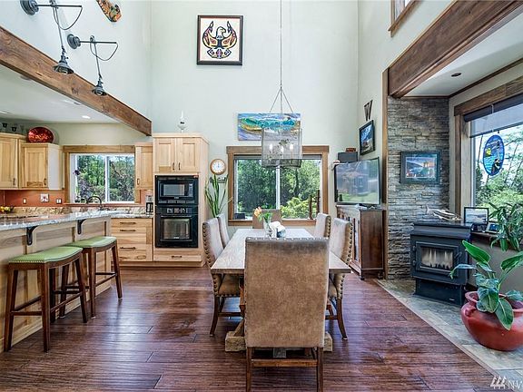 Beautiful custom built home w/ bay views. Lots of big windows bring in tons of natural light. Timber framing in the main living area's. Strand bamboo floors in kitchen/ great room, granite counters, custom natural hickory cabinets and stainless appliances. 5-piece en-suite master bath with huge walk in shower and jetted tub, quartz counter-tops and black walnut cabinets. Bonus room w/ 3/4 bath off the 2- car garage. Manicured property w/ fruit trees, flower beds and lots of parking.