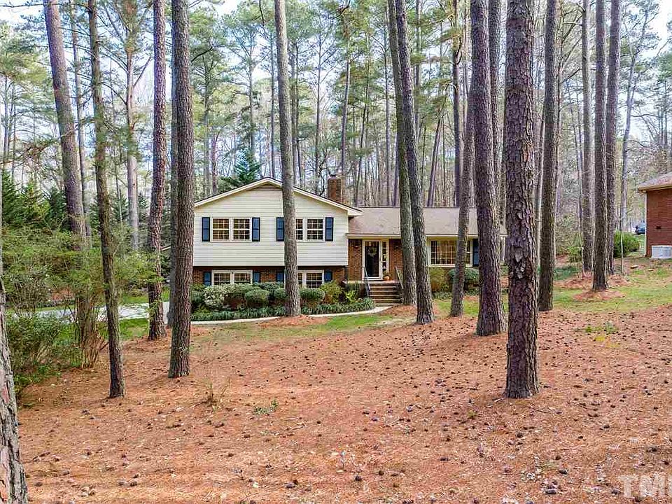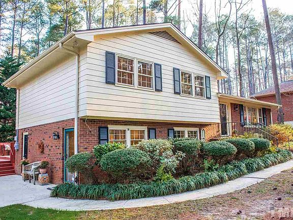 $25,000 Price Change!Well built 4 bdrm,3 full ba home nestled on gorgeous wooded lot close to Centennial Campus. No HOA & No City Taxes. Lower Level has walk in entrance from driveway, could be rental space, teen suite w/separate bdrm/office, full ba & family rm. Main level has lrg living rm overlooking beautiful natural front yard. Kit & dining rm. 3 addtnl bedrms up and 2 full ba. Newer stainless appliances, solid wood kit. cabinets. Lg deck overlooking stunning bckyrd w/storg bldng. Freshly painted.