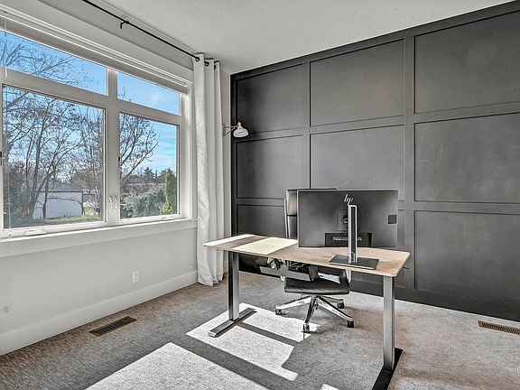 Located in a small, well-planned pocket neighborhood central to Boise's north end. This home has loads of personality; a unique kitchen with stunning quartz counters and farm style backsplash, neutral engineered hardwood throughout main floor, main level office or 5th bedroom, storage, mudroom, walk in pantry, great room concept with fireplace, and loads of natural light from an abundance of window. Second floor offers an extensive primary suite with a bathroom that offers a walk-in shower, stand-alone tub, dual vanities, and storage. Three additional bedrooms, one oversized and currently used as a media/family room. The second floor is complete with a light and bright laundry room that makes doing laundry fun again. Don't forget the three-car garage, rare for the area. Covered patio space and yard offer room for a swing set or more outdoor entertaining space. Move-in ready, shows like new.