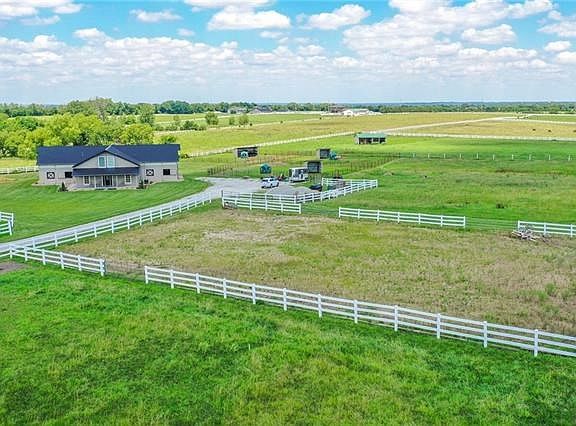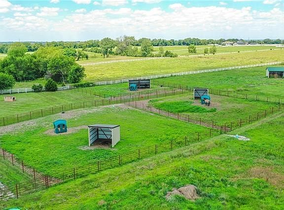DREAM PROPERTY FOR THE HORSE ENTHUSIAST! 10+/- acres is completely set up for horses with a beautiful, custom 6 stall barn with apartment, three dry lots with pipe fencing, shelters and auto waterers, outdoor arena, three fenced pastures with vinyl fencing. The main level also includes a heated and cooled office, full bath (shower is being added), mud room, tack room with sink and laundry, two hot/cold wash racks, covered porch and fenced yard for dogs. European stalls are matted with ceiling fans and auto waterers - four are 12 x 12 and two are 24 x 12. Upstairs is a one bedroom apartment with vaulted ceilings and windows overlooking the stalls, kitchen/living room combo, full bath, laundry and deck. Located a stones throw from Kill Creek Park with miles of trails, fishing lake, marina, and picnic shelters. Easy access to K-10. DeSoto schools. 2021-08-13