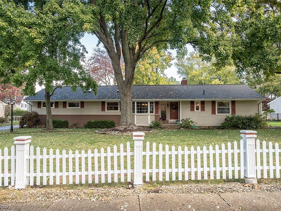 Have you been looking for a ranch with first floor laundry? This darling home is nestled on over a third of an acre in Avon Lake. Not only is the adorable white fence welcoming but the inside of this home radiates with natural light. The curb appeal game is raised even further with a rear entry garage. The gourmet kitchen boasts custom Shrock custom cabinets with roll outs, granite countertops, a beautiful backsplash, tons of lighting, two sinks including an entire prep sink and prep space, two skylights, a pantry with an automatic light, a stainless steel fridge and range top 2011, a new dishwasher in 2013, double oven, and a spacious eating area nestled in a nook with an Andersen bay window. The living room and dining room are a large but combined space full of sliding back doors and beautiful artisan woodwork. These doors lead to a private backyard with a large flagstone patio and gazebo. This is truly an amazing entertainment space all summer long. The master bedroom has its own bath, tons of light, and plenty of closet space including the closet system and built-in dressers in the hall. The full basement boasts a rec room, cedar closet with additional storage, 4th bedroom or bonus room, walk-out and tons of space for storage. The shiplap walls add a cozy cabin like feel. The HVAC system was replaced with a hi efficiency one in 2014 and even includes an april aire system. The hot water tank is new in 2023. Hurry and schedule a showing today.