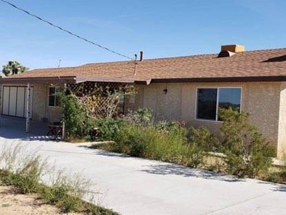 Private location on the Mesa/Aberdeen in Yucca Valley, home on 1.75 fenced acres; minutes away from Hwy 247 and 62. Major shopping is just 10 minutes away. Pioneer-town, a one time western movie set is nearby, great location for music and food. Close to Yucca Mesa Community Center offering cultural family activities and Joshua Tree National Park. This quaint home is 1,300 sq.ft. of living space, sits back from street, enter through an automatic gate onto a long driveway that leads to home, old garage converted into game room. Main home has 2 bedrms, 2 bths, large dining rm, tile floors & ceiling fans is connected to Kitchen w/breakfast rm, has generous cabinets & both connect to sizable carpeted Liv Rm. w/Heatilator fireplace. Dual pane windows, washer & dryer hook-ups in game room, bonus is the large workshop/garage/studio, w/3 air compressor lines, great to store recreational toys, dance or music studio!. Yard overlooks valley and enjoy your own personal Joshua Trees.
