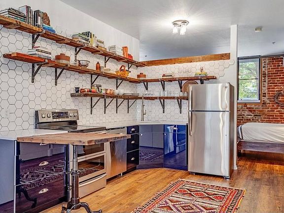 Sleek new kitchenContemporary bathExposed brickIn-unit laundryFloor to ceiling windowsPlank wood floorsNatural light