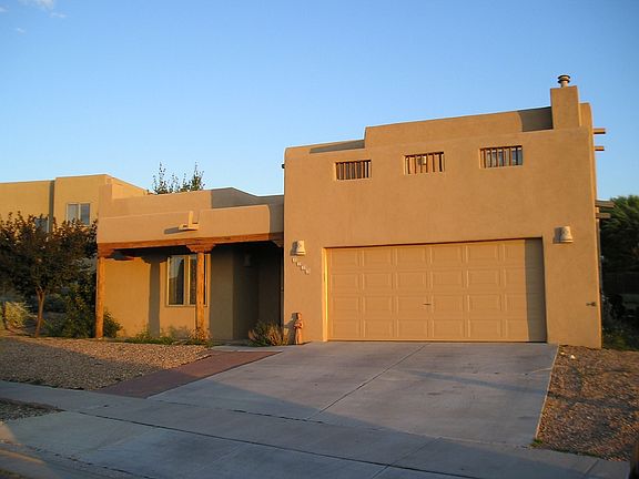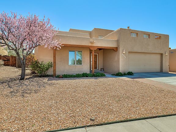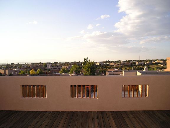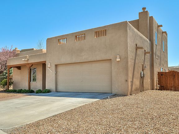This classic Santa Fe style 3 bedroom 2.5 bath home located in Pueblos del Sol offers spacious and flexible lifestyle options with two living rooms, one of which could serve as a media room, office or studio. Enter into the open and versatile main living area that flows easily to the dining room and kitchen, making hosting events a breeze. The wrap around kitchen has sleek stainless-steel appliances, granite countertops, ample storage and an arched opening to the separate dining area. From the dining room, French doors open to a shady portal and a lovely landscaped backyard with a wood ramada, perfect for alfresco dining and entertaining. The upstairs master suite has a roomy walk in closet, an en-suite bathroom with jetted tub plus separate shower and access to a sizable deck with wonderful mountain views. Two other bedrooms on the first floor offer plenty of privacy for guests. Special features include Saltillo tile throughout, latilla ceilings, plaster walls in the living areas, landscaping, insulated windows, 2 storage sheds and a 2-car garage. Updates/replacements within the last 2 years, some as recently as 3 months ago, include hot water heater, granite countertops, fridge and oven/range and garbage disposal, and garage door opener motor. The largest portion of the roof is under a year old and has a warranty. Convenient location close to shopping, theaters and restaurants in the Midtown area yet only 20 minutes from the historic Santa Fe Plaza.
