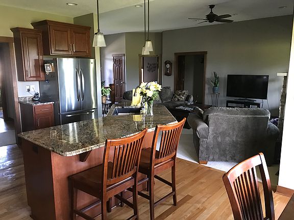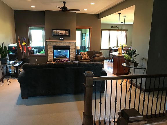 Large open walkout ranch surrounded by an outlot, pond and field at the end of a cul-de-sac in a quiet neighborhood 5-10 minutes from downtown. Great neighbors! Enjoy the wildlife/birds. Floor plan is very open with two fireplace units to keep you warm on cool evenings. Exremely clean and neat - never housed animals. Basement was finished just recently except for storage areas. Nice place!