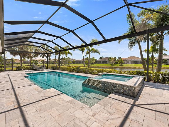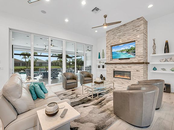 Welcome to the resort lifestyle of Marsh Cove in the upscale and award-winning community of Fiddler's Creek in Naples, Florida. Marsh Cove is one of the newer gated communities offering luxury Ashton Woods homes. This 3,000+ sq. ft. customized home, featuring an open-floor plan with soaring ceilings, is situated on a premier oversized cul-de-sac lot with southern exposure and lake views. The quartz gourmet kitchen, large pantry room, five hundred bottle wine room and oversized screened travertine lanai with pool, spa and outdoor kitchen offer the perfect mix of luxury indoor & outdoor lifestyle. The exterior includes a tile roof, impact resistant doors and windows and a long stone paver driveway. The welcoming French door entry leads to the main living area beyond which are double slider doors opening onto the lanai. The sophisticated interior living space is complete with high end finishes throughout and is offered fully furnished. The oversized owner's suite is complete with a large walk-in closet and an ensuite bath with dual sinks, free standing tub, and a frameless glass shower. Each guest room has an ensuite bathroom and walk-in closet. Fiddler's Creek is committed to preserving the environment. The 4,000-acre community enhances the natural beauty of Southwest Florida. The area surrounding the community is dedicated to nature reserves, lakes and recreational areas. Fiddler's Creek is known for its amenities including a full fitness center, full-service spa, casual/fine dining, resort-style pools, tennis, bocce and pickleball. Golf, beach and marina memberships are optional.