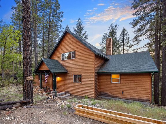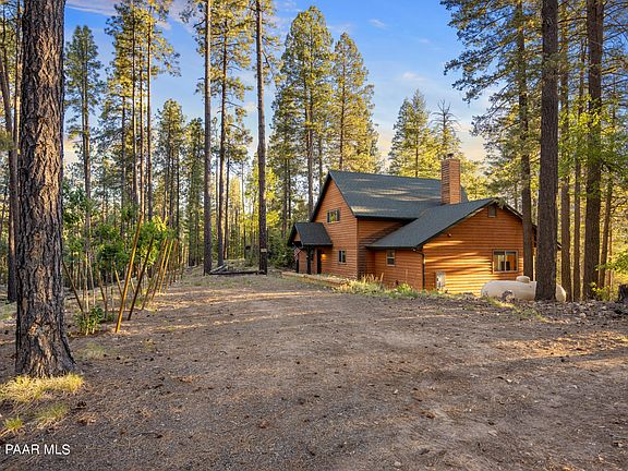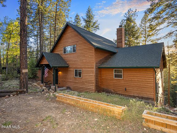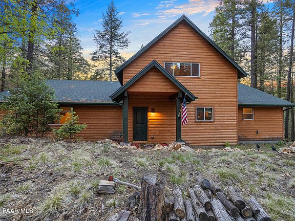 Beautiful custom contemporary cabin with a split br floorplan in the woods on approximately 2 acres!. This is your perfect summer get away for the entire family. You'll be in the middle of Prescott's Ponderosa Pines yet only minutes to shopping, dining and all of the amenities of town. Take a short drive to Lynx Lake Day use area to enjoy kayaking, hiking, fishing or a picnic lunch on the lake. After you're done enjoying all the area has to offer, relax on the deck in the hot tub or grill up the perfect meal as you enjoy watching the resident wildlife meander through your yard. If you'd rather prepare something more elaborate, the fully equipped kitchen, with custom cabinetry, granite counters & center island makes the perfect gathering place. Don't forget to move the celebration into the 2 story great room where you will enjoy a warm fire in the floor to ceiling stone front fireplace. The loft area is perfect for that home office offering an unobstructed view of trees. The unfinished basement offers much desired storage. NEW IN 2021- top of the line A/C, gutters w/guards, added trees for further privacy, graded driveway and added drainage for ease of access. This is truly high end mountain living at its best!