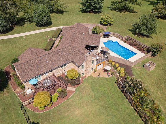 Exceptionally Built All Brick Ranch on 10.7 Gorgeous Acres w/Pond! Private Salt Water Pool, Granite-Grip Decking & Entertainment Kitchen Featuring High-End Outdoor Appliances. Inside Expansive Updated Gourmet Island Kitchen/Wolf Appliances & Large Vaulted Beamed Ceiling Living Room Open to Pool. Separate Wet-Bar/Wine Cooler. Huge Primary Bedroom w/Private Deck Overlooking Beautifully Landscaped Property. Extra Large Garage 2+, Ample Parking on Stamped Concrete Parking Pad. Finished Walk-out Basement has One-Car Brick Garage, Bedroom, Bath, LR, Reinforced Storm Shelter and Tons of Storage! Full House Generator! SEPARATE 1620 SF GUEST HOUSE w/Full Kitchen, 2 Baths, Separate Drive! See Special Features Sheet. Verifiable Proof of Funds Required. 24 hr. notice to show. (Additional Contiguous 3.4 Acre Residential Lot in Beechwood Subdivision Available for Negotiation with Sale of Home Only. Contact listing agent for more information )