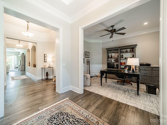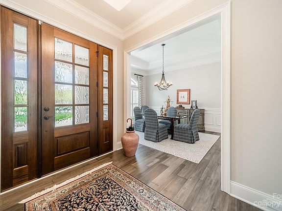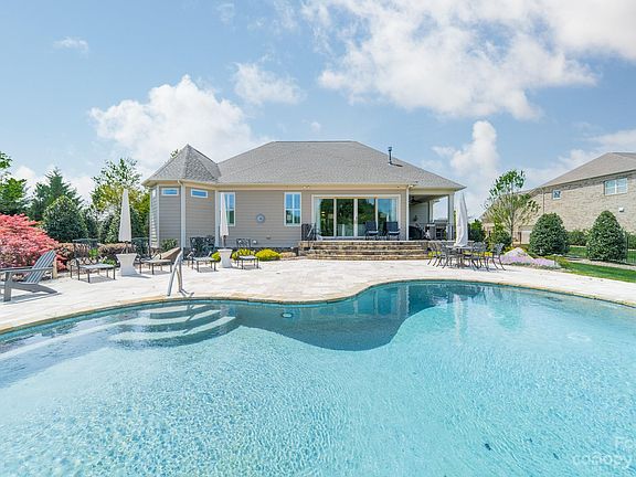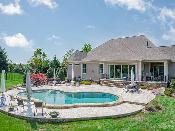 Beautiful luxury Toll Brothers home in Weddington’s desirable Bromley neighborhood w/fantastic outdoor living space with heated saltwater pool. Wonderful curb appeal w/landscaping throughout yard, low-voltage landscape lighting, and front/back/drip irrigation. Outdoor living space with rocking-chair front porch, covered side porch w/TV mount & ceiling fan, grilling area, travertine raised patio overlooking spacious travertine pool deck & fenced back yard. Indoors, you'll find custom touches and conveniences throughout, such as the bar with wine chiller, extensive trim work, prefinished wide-plank wood floors, & trendy decor/lighting. The kitchen is a chef's delight with high-end appliances including double ovens and the newest induction stovetop. The primary suite has a huge walk-in custom closet w/laundry room access. The primary bath is a showstopper! Storage galore; all closets & garages have custom systems by “Closets by Design”. This home is simply stunning, both inside and out!