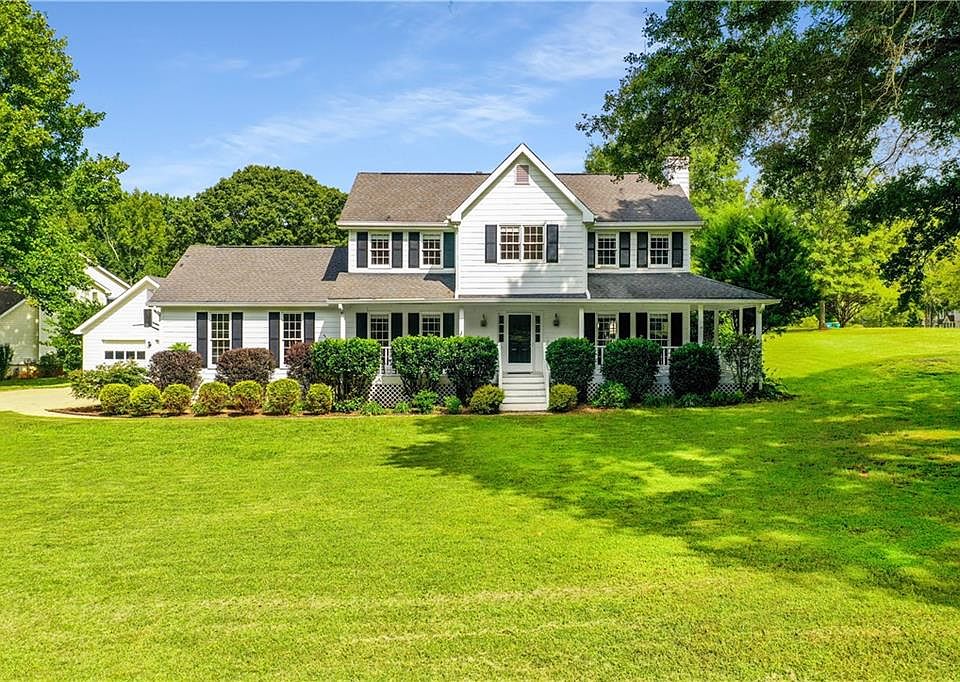 A charming southern style home with beautiful wrap around porch and in-ground pool on a flat one-acre lot! The curb appeal on this home is just wonderful! Including 4 bedrooms and 2.5 bathrooms this property has the Alpharetta address with Cherokee County taxes. The main level features a spacious living room with a brick stone fireplace and laminate floors that continue into the formal dining room. The white bright kitchen includes granite counters, tile backsplash and a breakfast area. Upstairs features a large primary suite with a renovated bathroom including a walk-in shower, double vanity, and a large walk-in closet. Three additional guest bedrooms complete the upstairs! You’ll feel like you’re on holiday much of the year with the fantastic outdoor entertainment space including a pool, oversized deck, and a large screened-in porch! Don’t forget the attached two car garage AND a second oversized garage/workshop w/attic that is already plumbed and has electrical installed; this could be converted to an amazing in-law suite! Hopewell Chase is surrounded by horse farms, golf courses and the surrounding countryside, while only a 15–20-minute drive to Downtown Alpharetta, the Avalon and the Cumming City Center you have all the shopping and restaurants you seek while still enjoying a peaceful retreat called home! Hopewell Chase has no HOA and no rental restrictions at all.
