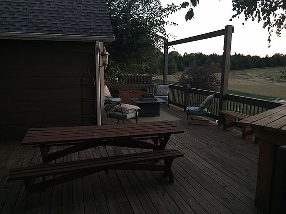 Stylish 5 bedroom, 3 full bath ranch home in desirable Maize school district and a neighborhood that's close enough to all the amenities but with the feel of country living. You won't believe the view from the backyard! The kitchen has modern black-shimmer concrete countertops and an apron-front stainless steel sink with chef-style faucet. The spacious deck -- off the kitchen and master bedroom -- spans the width of the house and overlooks a huge backyard with mature trees for shade over the stone patio. Irrigation well for the sprinkler system helps keep the yard green and lush throughout the summer! Third car garage has a 10X16 storage loft, shop and a rear garage door for easy access to the backyard. A large, unique wet bar in the basement is great for entertaining. Play music from local radio stations, CDs or your MP3 library on the stereo system throughout the interior and exterior. Roof and water heater are approximately two years old. You do not want to miss out on this beautiful home that will go fast! Sellers are motivated.