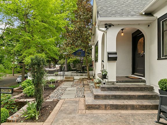 Situated on a delightful, quiet, tree-lined street this move-in ready 4 bedroom English home offers historical charm & contemporary styling. Gorgeous kitchen, open plan living, large level yard in rear, 2 bedrooms on the main, 1 bedroom + large, gracious master suite on upper level. Finished family room with home theater system in basement + huge storage room with development potential. Interior access to garage. Patio in front and back + hot tub. Check out video links inc. 3D tour! [Home Energy Score = 3. HES Report at https://rpt.greenbuildingregistry.com/hes/OR10183844]