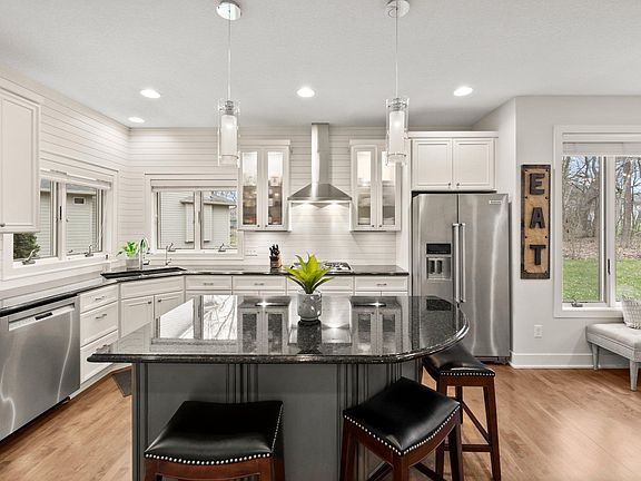 Spectacular one level living in Plymouth! Cul-de-sac and wooded lot, this home is convenient to Downtown Minneapolis, freeways, lakes, dining and entertainment. Completely refreshed main level features stained maple hardwood floors with a custom gourmet kitchen with stunning white cabinets, granite countertops, stainless appliances, exhaust hood and shiplap backsplash. Informal dining area opens to the spacious living room with tray ceiling and stone-faced gas fireplace. Relax in the sun-drenched four-season porch with beam ceiling. Main floor primary bedroom is nicely sized with crown molding, shiplap and spa-like en-suite full bathroom with tiled walk in shower with separate soaker tub. Laundry, mudroom, ½ bath and 2nd bedroom/office complete the main level. Cozy lower level features two large bedrooms, exercise room, full bath, full bar and family room with gas fireplace. Low-maintenance deck and firepit out back are great for entertaining. 3 car garage and concrete driveway.