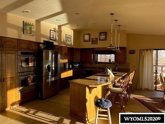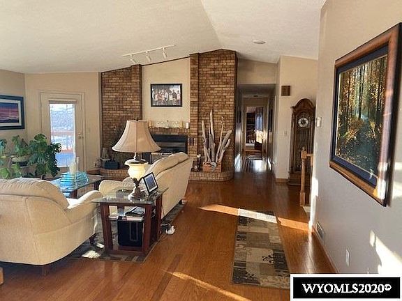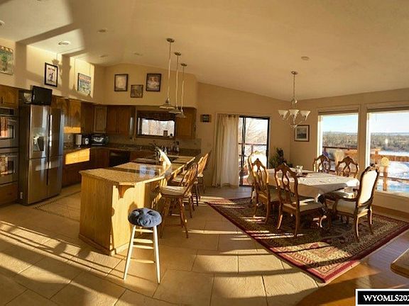 Spectacular views of the Wind River and Wind River Mountain Range. Open floor plan, and updated bathrooms. Walk out basement with same open views, workout room, lots of storage . Main floor laundry, oversized garage with paved circular driveway, and an extensive viewing deck. Hot tub included. So many more special features. Living on the river with amenities!