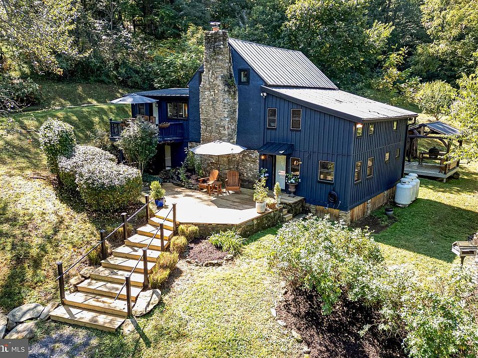 DARK HOLLOW | Unique offering on almost 34 acres in Fauquier County. This charming c.1850 home was built with material from the property including stones from the ridges for the foundation, chimney, and patio and hand-hewn Chestnut trees for all the braces. The property has had only 4 owners, and the original cabin has had additions over the decades, but the original charm remains along with modern updates. The kitchen boasts of high-end appliances including a Viking range and the property has a whole farm generator. Living spaces include an upstairs den with exposed beams, dining area off the kitchen, and sitting room as you enter. There are a total of four bedrooms including two large suites with private outdoor space. There are several additional rooms ideal for office/workspaces. The grounds around the house include hardscaping with large stones, a spacious front deck, patios, mature trees, and gardens. There is a large barn available for a variety of uses, equipment shed, and several wooded paddocks with Mitchell’s Branch creek along the back of the property. A new garage offers ample storage upstairs. Offering includes two parcels within close proximity to Route 66. Newer HVAC systems throughout. One-of-a-kind. Full list of improvements available.