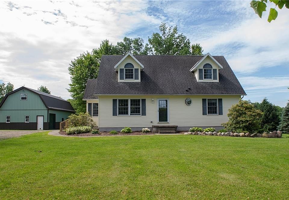 Fresh paint thruout, new lvp flooring in kitchen and br2, all new carpet upstairs and l/r . Pretty much move in ready . Barn has 2 garages, brand new steel siding, roof was new year before, mostly new windows, tons of storage down and upstairs. House has 8' superior walls in basement so easier to finish into living space. Bilco door for additional access.
