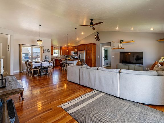 Immerse yourself in the stunning views of Heart Mountain from your living room window in this inviting 5-bedroom, 3-bathroom home. Spanning 3,790 sq ft, this home provides an abundance of space and comfort, ensuring everyone finds their favorite spot. The upstairs features an open floor plan that is perfect for entertaining. The spacious, sunlit living area seamlessly flows into the dining space and kitchen, creating an inviting atmosphere for gatherings and everyday living. When it's time to unwind, retreat to the basement where the theater room awaits, perfect for movie nights or watching the big game. Additionally, the basement offers extra living space that can be customized to suit your needs, whether it’s a home office, gym, or playroom. With ample parking for your recreational vehicles and an expansive garage that includes an extra-deep bay, you’ll have all the storage space you need. The beautiful curb appeal is enhanced by well-maintained landscaping, giving the home a welcoming presence in a fantastic neighborhood. Call today for a tour! The backyard offers a serene escape with breathtaking views, providing a perfect backdrop for outdoor activities and relaxation. Whether you're sipping your morning coffee or hosting a summer barbecue, the stunning scenery will never cease to amaze. Experience the perfect blend of comfort, space, and natural beauty in this exceptional home.