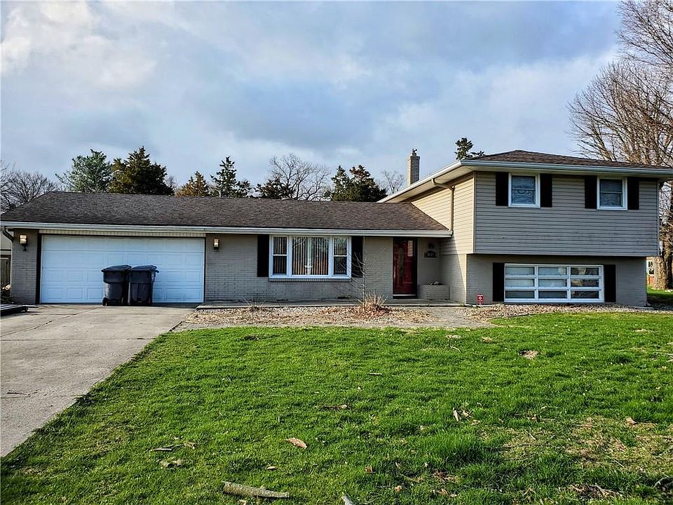 Southside Anderson Tri-level with 3 bedrooms 1 1/2 baths. Living room has a floating fireplace. Beautiful updated kitchen with backsplash and tile floor. Patio doors have built in blinds. Marjority of windows have been replaced. Large recreation area, laundry room in walkout basement. Large backyard with complete privacy fence, two decks, Pole Barn i20x24x14, above ground pool. Close to I-69. Being Sold "As Is"