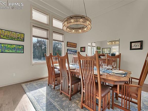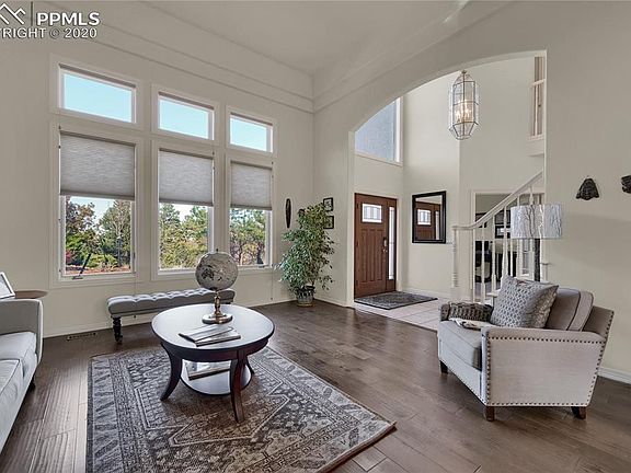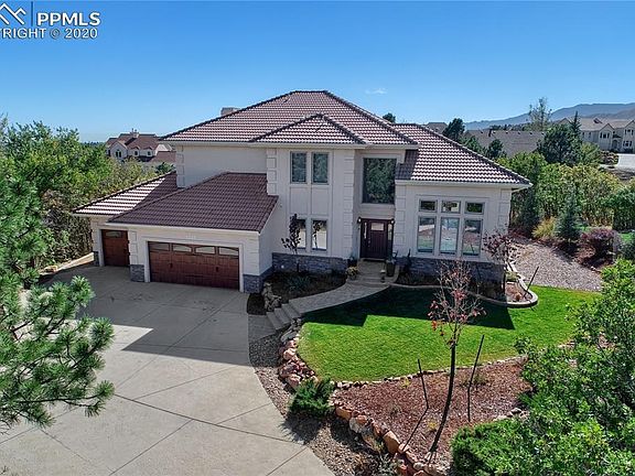 Tucked back off of Woodmen Road this stunning Peregrine home, boasting numerous upgrades, overlooks open space through walls of windows. Light and bright the sunlight drenches the large south facing kitchen which has been newly remodeled with new appliances and slab granite counters. From the kitchen walk out on the an enormous deck addition with a "living room" and a hot tub below all overlooking the preserve/open space. There are generous sized living areas throughout the main floor to include a family room off the kitchen, large formal dining and living room areas and a private study for the home office. Up the spiral staircase you will find a generous sized master bedroom with 5 piece bath and large walk-in closet. Upstairs are two additional bedrooms and a full bath. The fun begins in the walk out lower level complete with a large game room, with wet bar and a full kitchen perfect for guests. You will find 2 more large bedrooms and a 3/4 bath. Walk out to the lower patio with stone fireplace and hot tub for those cold winter nights. Upgrades include newer: Garage doors, front front door, newer stone veneer added to front. Upgraded lighting. New oven, microwave, dishwasher, and sink in kitchen. Upgraded kitchen cabinetry. New granite counters in master and kitchen. Wood flooring. Newly expanded composite deck with living and sitting areas. Located in award winning D20 schools in mountain splendor yet close to shopping, schools and restaurants. For the out door enthusiasts it is minutes to Mount Blodgett trails. This special home with views is a must see and a rare find in Talon Ridge.