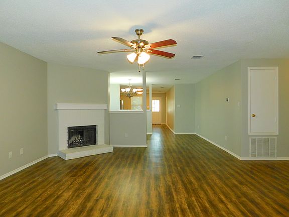 Brick wood-burning fireplaceShady backyardOpen floor planOpen patioStainless steel appliancesCeiling fansGranite countertops