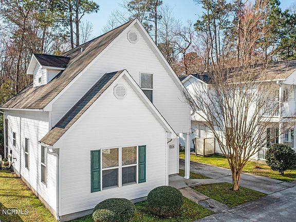 Welcome home to Williamsburg Place! This detached townhome is move-in ready & nestled in a quiet section of Northchase, super convenient to schools & shopping. The home has been lovingly maintained with newly-painted walls and new blinds. The open floor plan features a combo living/dining area leading into the kitchen, where you'll find a countertop microwave & refrigerator with ice maker that both convey, along with the laundry closet & a stackable washer/dryer that also come with the house. Step out the back door onto the sunny screened porch, with a peaceful view of the woods instead of someone else's back yard. LVP floors are in the kitchen, living area, and primary bedroom, which is on the main floor. The primary bath has a tile floor & a walk-in shower. Up the newly carpeted stairs, you'll find 2 more bedrooms with newly carpeted floors that share a full bath with a tub shower. There are ceiling fans throughout the home & an amazing amount of closet space, plus storage under the stairs. Ready to play outside? HOA includes Northchase community pool, playground, basketball court, picnic shelter, walking trails & tennis/pickleball courts, all less than a mile away. Looking for the privacy of a single family home with landscaping maintained by the HOA? This is it & it won't last long - schedule your showing today!