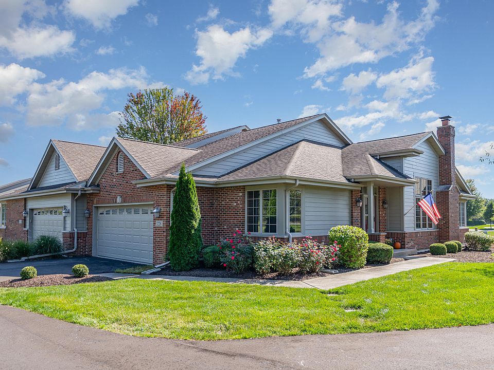 Welcome to effortless living in this beautifully maintained 2-bedroom, 2-bath brick townhouse nestled along the scenic Briar Leaf Golf Course. Designed for comfort and convenience, this home features an open-concept living and dining area with soaring vaulted ceilings, a cozy fireplace, and abundant natural light. This home boasts a new furnace and generator installed in 2024. and the freshly painted interior feels crisp and move-in ready. The spacious eat-in kitchen is both functional and stylish, equipped with stainless steel appliances and ample cabinetry--perfect for casual meals or entertaining. Retreat to the primary suite with a private bath and generous walk-in closet for added privacy and comfort. Enjoy main-floor living with the bonus of a full unfinished basement offering endless possibilities--home gym, office, or additional living space. A two-car attached garage, composite deck, and whole-house generator add convenience and peace of mind. Freshly landscaped and move-in ready, this property offers true low-maintenance living in a highly desirable golf course community. Whether you're looking to downsize or simplify, this home checks all the boxes!