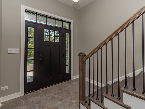 Welcome to this newer custom built home located on a beautiful 1 acre hillside lot in Nottingham Woods. This modern home has many upgrades throughout with no expense spared. As you walk in the front door, there is beautiful foyer with hickory hardwood floors throughout the entire home. Off to the right is an office/den that could also be used as a fourth bedroom. There is a powder room and laundry room with a utility sink and ample cabinet and counter space for convenience. The bright living room area boasts cathedral ceilings and a gas fireplace. This opens to the large kitchen with custom gray cabinets, quartz countertops, kohler fixtures and stainless steel appliances. An oversized sliding glass door leads to the deck from the kitchen where you can look at the beautiful yard with mature trees and gazebo. Upstairs, the primary suite features a cathedral ceiling, walk in closet, dual vanity and a large tiled shower with Kohler fixtures. The two other bedrooms located on the second floor with built in lighting and a custom seating area located in the third bedroom. The unfinished basement is great for extra storage or creating additional finished living space. Don't miss your chance to own this almost NEW built custom home!
