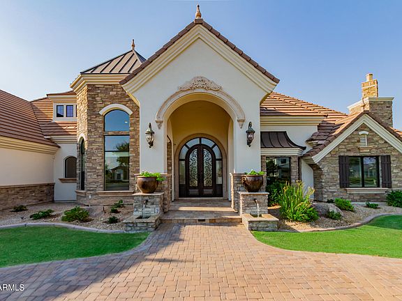 Get ready to be amazed! 🌟 Discover this stunning remodeled 6-bedroom, 6.5-bathroom gem for sale in Mesa! This luxurious home offers everything you could want: lush green landscaping, with mature trees and landscape including multiple varieties of citrus trees. Gorgeous curb appeal includes a circular driveway, a 3-car garage & separate tall boat garage could store multiple cars on lifts and RV gate. Inviting Diving Pool with Slide & Grotto, lots of decking and shaded patios w/ Built-in BBQ for gathering. Step inside to find a formal dining room, a cozy living area with a fireplace, and built-in cabinets. There's also a den and an office, new elegant light fixtures throughout, bay windows, and neutral new paint that creates a warm and inviting atmosphere. The fabulous kitchen... is a chef's paradise, featuring ample cabinetry, a gigantic walk-in pantry, granite countertops, and stainless steel appliances, including a double wall oven. The charming island with a breakfast bar is perfect for gathering. Plus, there's a basement with a giant game/media room with an additional bedroom and workout room. The grand primary bedroom is a true retreat, boasting a second fireplace, private entries to the backyard, a full bath with double sinks, a separate tub and shower, and a spacious walk-in closet. This home has just undergone renovations - see the document section for the extensive list of upgrades/remodeling.