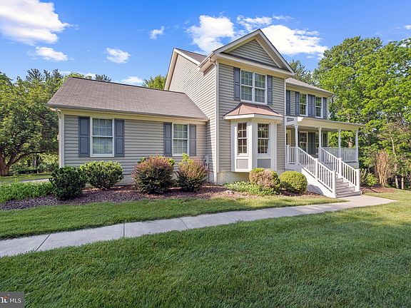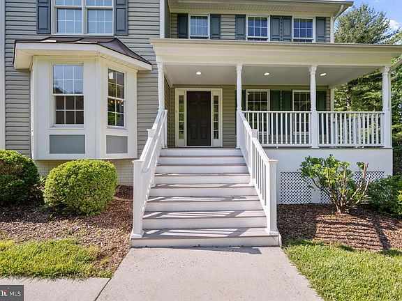 Beautifully maintained by its original owners, this stunning Colonial residence in picturesque Cabin Branch Farm offers 2,360 square feet, 3 bedrooms, 2 full baths, 1 half bath, and a 2-car garage—all set on nearly 4 serene acres. A long private driveway leads to the home, where a welcoming front porch sets the tone. Step inside to gleaming hardwood floors that flow through a grand foyer, formal living room, elegant dining room with bay windows, a stylish powder room, and a spacious open-concept family room featuring a charming brick-accented wood-burning fireplace and access to the backyard. The gourmet eat-in kitchen is a chef’s dream, appointed with stainless steel appliances, quartz countertops, a pantry, ample cabinetry, and a tasteful tile backsplash. Just off the kitchen, an expansive sunroom with soaring vaulted ceilings, panoramic windows, and a cozy gas fireplace provides a bright and inviting space to enjoy year-round. Upstairs, find three generously sized bedrooms, including a gorgeous primary suite with a walk-in closet and a private en suite bath. Both full bathrooms were tastefully updated in 2022 with modern finishes. A dedicated laundry room with a newly replaced washer adds convenience. The walk-out lower level offers endless potential and is ready to be finished to suit your needs. Outdoor living is equally exceptional, with 3.91 acres of professionally landscaped grounds backing to Little Patuxent State Park and equestrian land. Enjoy the large backyard, a spacious deck ideal for entertaining, and a detached shed for additional storage.