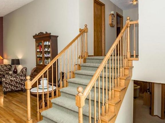 Gracious and Spacious! This 4 level with 3 bedrooms on upper level has hard wood floors in living room and kitchen. The kitchen entrance is off the garage and has Corian counters and tile back splash.Family Room features wood burning fireplace and built in shelves. Basement level has family room and great storage and workshop area. Large laundry with lots of cabinets. Entrance from garage to basement level too.Balcony off of master bedroom and 3/4 bath.